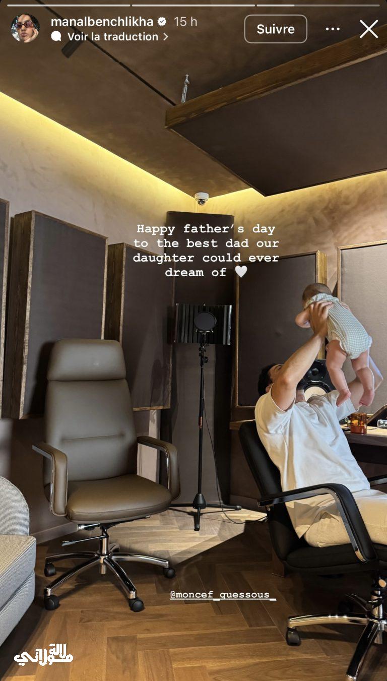 وقامت منال بمشاركة صورة دافئة جمعت زوجها بابنتهما، مستعينة بخاصية القصص اليومية على “إنستغرام”، ورفقتها بتدوينة عبرت من خلالها عن فخرها بوجوده في حياتهما، معتبرة إياه الأب المثالي لابنتهما، وكتبت: “عيد سعيد لأروع أب يمكن لابنتنا أن تتمنى وجوده”.