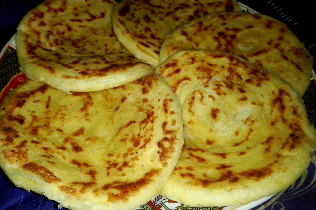 نصف كيلو دقيق ابيض مع رابعة دقيق القمح فينو ملح معلقة ونصف عسل عادي ممكن تعوضوه بسكر خميرة معجونة اتعجنو بماء دافئ مزيان دهنو العجين بالزيت خلوه 5 دقائق بالتمام انقرصوه كويرات ندهنوهم بالزيت انخليوهم 5د وحدة أخرى ندوبو الزبدة والزيت انخلطو خمارة مع زلافة دقيق القمح الفينو او السميدة رقيقة انبدا نخدموه.