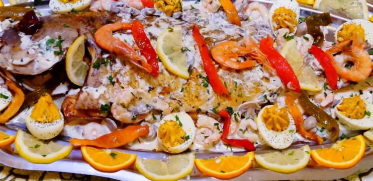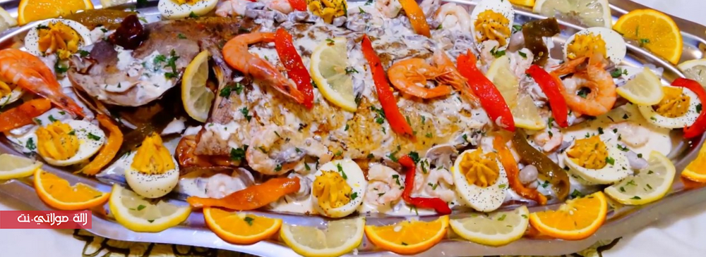 نعمرو الحوتة ونديروها فورق الطهي وندخلوها الفرن حتى طيب مزيان نديروها فطبق التقديم ونزينوها بالصلصة البيضاء