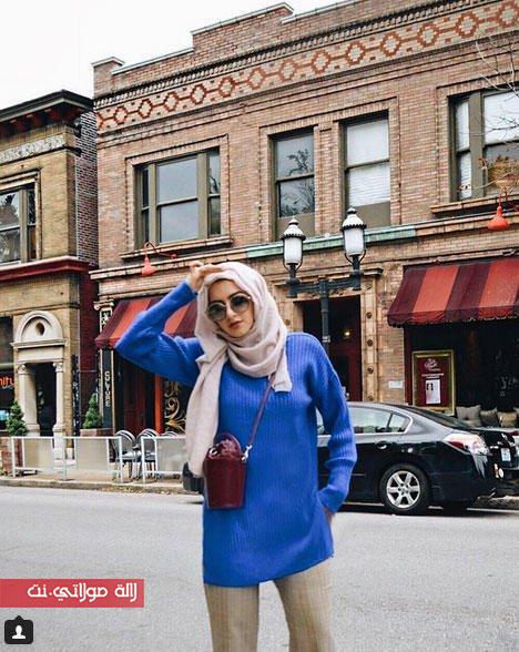 الدرجات الزاهية من اللون الأزرق هي الأبرز في شتاء 2018، فيمكنك ارتداء بلوفر أزرق مثل الذي اختارته الفاشينيستا سمر البرشا، أو معطف أزرق أنيق بوحي من الفاشينيستا مرمر.