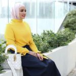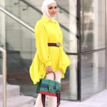 أما إذا كنتِ لا تفضلين أن يكون اللون الأصفر هو الأساسي في إطلالتك، فيمكنك الاكتفاء ببلوفر أو كنزة تحتية بسيطة بالأصفر مع سترة بلون مناسب لها على طريقة الفاشينيستا زينب حمود.