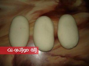 بعد ذالك اصنعي منها 3 كويرات.. ومرة أخرى اتركها ترتاح لمدة 5 دقائق، ثم بسطي كل كويرة بالطول.