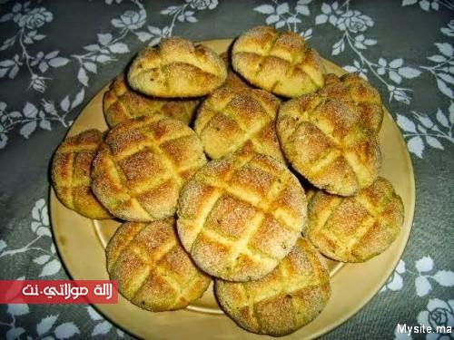 نبسبسو سميدة بالزيت نضيف باقي المكونات نجمعو المكونات بالحليب نكوروها كورات صغار نوضعوهم في السميدة نشرطوهم بالسكين على هذا الشكل ندخلوهم لفران.