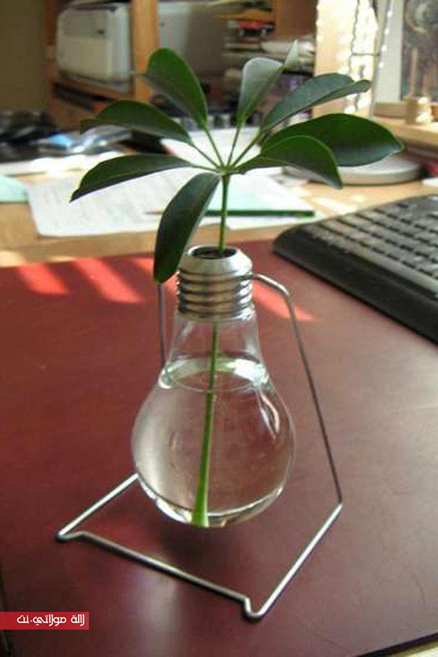 التجديد والتغيير في ديكور المنزل يبعث عليك كثيرا من السعادة، وهذا يكون بإضافة لمسات صغيرة للغاية، فمثلا هل فكرتي من قبل في استخدام آخر للمبات غير أنها مصابيح إضاءة؟ اللمبات يمكن تحويلها إلى قصاري زرع غاية في الأناقة وستمنحك طاقة إيجابية وسعادة في ديكور منزلك.