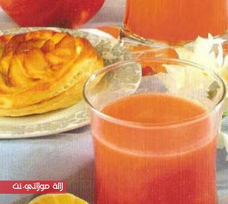 نغسل التفاح نقشره و نقطعه قطع صغيرة ثم نضعه في الخلاط الكهربائي مع الماء