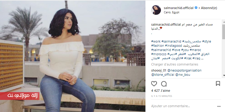 ظهرت الفنانة المغربية الشابة سلمى رشيد في أحدث ظهور لها في مصر بإطلالة شبابية تظهر قوامها الرشيق أثار إعجاب متتبعيها.