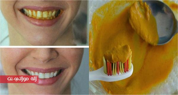 – امزجي مسحوق الكركم والصودا في وعاء ثم أضيفي زيت جوز الهند إلى الخليط جيدا حتى تتشكل عجينة