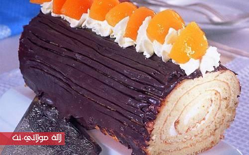 عجينة الجاتوه ٣ بيضاتكوب من السكر الناعمكوب ونصف الكوب من الدقيق (الطحين)فانيلا.القشدة ٢٥٠غ من الزبدة في حرارة الغرفةعلبة من الحليب المكثف.قشدة الشوكولاالقشدة البيضاء نفسها مع ٢ إلى ٣ ملاعق طعام من الشوكولا السوداء المذوبة وملعقة طعام من مسحوق الكاكاو. تحضير عجينة الجاتوه يخفق البيض حتى يصبح خفيفاً وشاحب اللون.يضاف إليه السكر الناعم وبتابع الخفق حتى يمتزج السكر جيداً مع البيضتوقف آلة الخلط ويضاف الدقيق والفانيلا إلى مزيج البيض بواسطة ملعقة.يبسط مزيج الجاتوه في صينية مسطحة حجمها ٣٠*٢٠*٢ سم ومبطنة بورق البرشمان.تخبز الصينية لمدة ١٠-١٢ دقيقة في فرن حرارته ٣٥٠ درجة فهرنهايت أو ١٨٠ درجة مئوية أو غاز رقم ٤ حتى يصبح الجاتوه جافاً عند لمسه بطرف الإصبع وقعره وردي اللون. يترك الجاتوه حتى يبرد.>ينزع ورق البرشمان عن الجاتوه، ثم يلف بمنشفة مرشوشة بالسكر الناعم. يترك الجاتوه الملفوف جانباً. تحضير القشدة يفتح الجاتوه وتبسط فوقه القشدة البيضاء، ثم يعاد لفه ويزين سطحه بقشدة الشوكولا والمشمش المعلب والقشدة المخفوقة. تحضير قشدة الشوكولا تخفق الزبدة حتى تصبح خفيفة. يضاف إليها الحليب المكثف ويتابع الخفق للحصول على قشدة خفيفة قابلة للبسط.لإعداد قشدة الشوكولا، يستعمل قسم من القشدة البيضاء وتضاف إليها الشوكولا المذوبة مع مسحوق الكاكاو.تبسط قشدة الشوكولا فوق الجاتوه وتحزز بواسطة الشوكة للحصول على الأشكال المطلوبة.يزين الجاتوه الملفوف بقطع المشمش المعلبة والقشدة المخفوقة