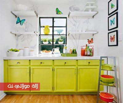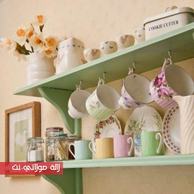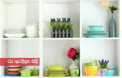 -الدولاب المفتوح: يُمكنك تخزين فيه أدوات المطبخ التي تحتاجينها، وترتيبها بشكل متناسق لتبدو أكثر تنظيما. اختاري أدوات منزل بألوان مختلفة حتى تُزهري مطبخك بطلة ساحرة.