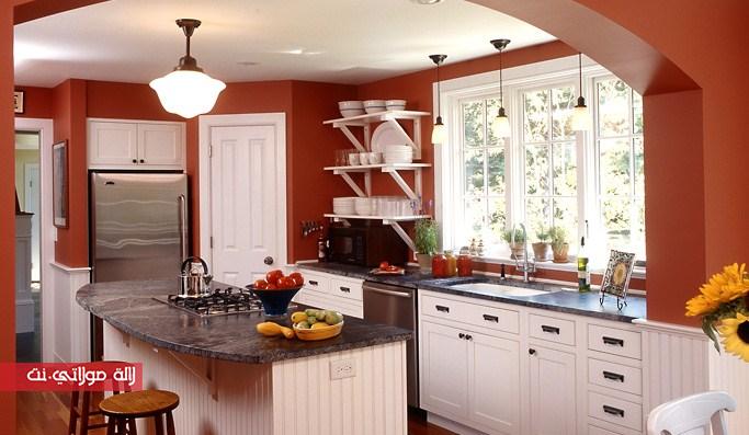 -الرفوف الخشبية: استعيني بالرفوف الخشبية لأنها تنُظم مطبخك أكثر، ويُمكنك وضع بعض البرطمانات عليها سواء للاستعمال أو للديكور والتزيين، كما يُمكنك وضع مزهريات صغيرة بألوان زاهية.