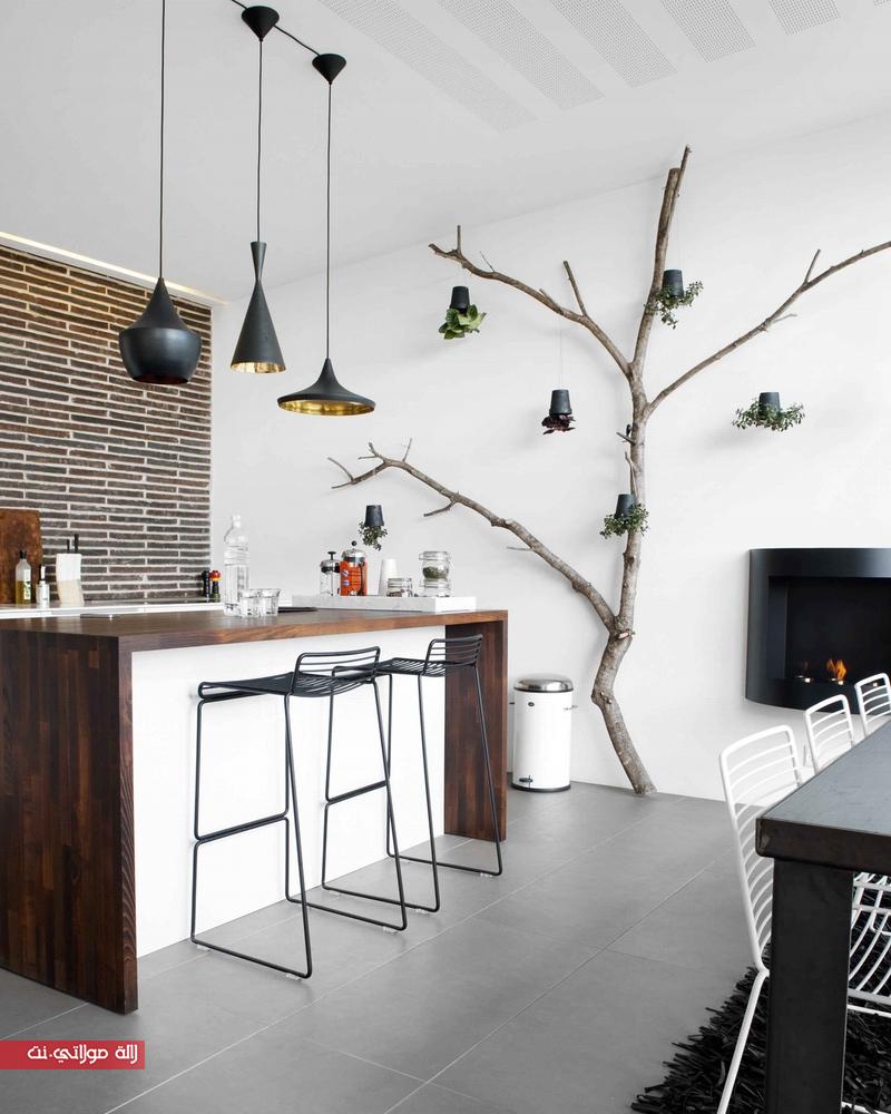 -زيني الجدران بديكورات: أضيفي لمستك الخاصة على مطبخك، من خلال تزيين جدرانه ببعض الديكورات كالأطباق الخشبية، أو الأدوات القديمة أو غيرها من قطع الديكور التي تتماشى مع تصميم المطبخ.