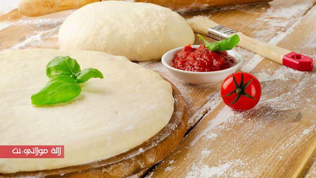 ثم بعد ١٠ دقائق ترفع العجينة وتدهن ب صوص البيتزا و باقي المكونات وتترك حتى تشقر أطراف العجينة وتقدم ساخنة .