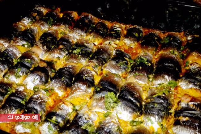 ننظف السردين و نزيل منه كل الأشواك و الحوافثم نغسله و نعصر عليه ليمونه حامضه و يترك يقطرنحضر الشرمولةنخلط الكزبرة و البقدونس و الثوم و التوابل ثم نقسم الخليط الى قسمينالقسم الاول نخلطه مع الأرز المسلوق لنحصل على الحشوةو القسم الثاني نضيفه الى الطماطم المطحونة و زيت الزيتوننأخذ قطعة سردين و نضع على طرفها اصبع من حشوة الأرز ثم نلفه داخل قطعة السرديننضع لفائف السردين المحشوة في صينية فرن ثم نغطيها بصلصة الطماطمو ندخلها إلى الفرن