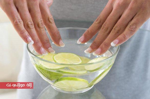 قومي بدعك الأظافر بشرائح الليمون لمدة 5 إلى 10 دقائق.