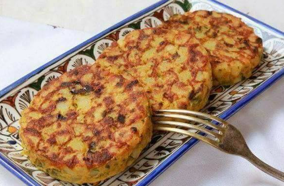 ● نأخد مقلاة نضع فيها كمية قليلة من الزيت و نضع فيها اطار صغير دائري نضع داخله القليل من الحشوة و نطبخها من كلا الجهتين.