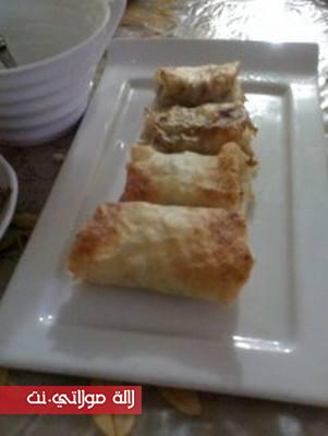 نبسط ورق البسطيلة ندهنه بقليل من الزبد المذابة نضع مقدار ملعقتين من الحشوة و نرشه بقليل من الجبن نتني جانبي الورقة كي لاتتسرب الحشوة ثم نطوي على شكل مستطيل نلسق أخرها بقليل من البيض المخفوق.