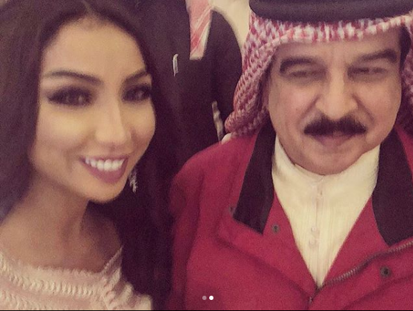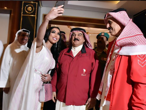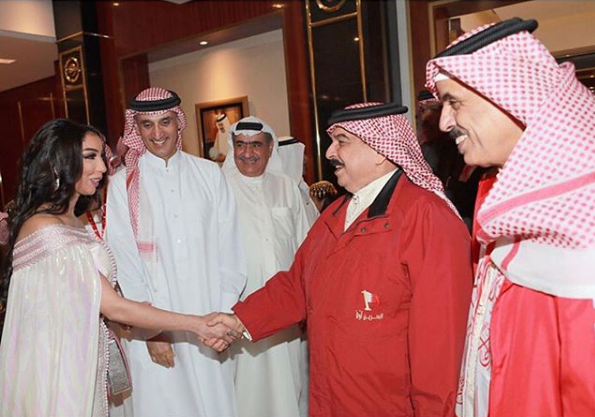 دنيا بطمة تشعل مواقع التواصل الاجتماعي بإطلالة ملكية والتقاط صور سلفي رفقة ملك البحرين
