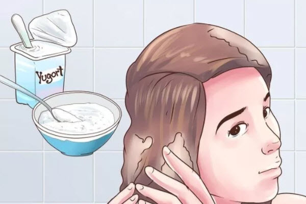 – صبي 3 ملاعق طعام أو أكثر من الزبادي على فروة الرأس، ودلكي بشكل جيد. ولا ننسى الجزء الخلفي من الرأس!
