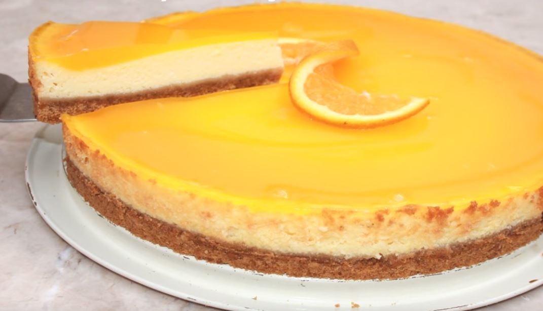 تحضير تشيز كيك رائع بالبرتقال بدون كريمة و بدون جيلاتين سهل و لذيذ