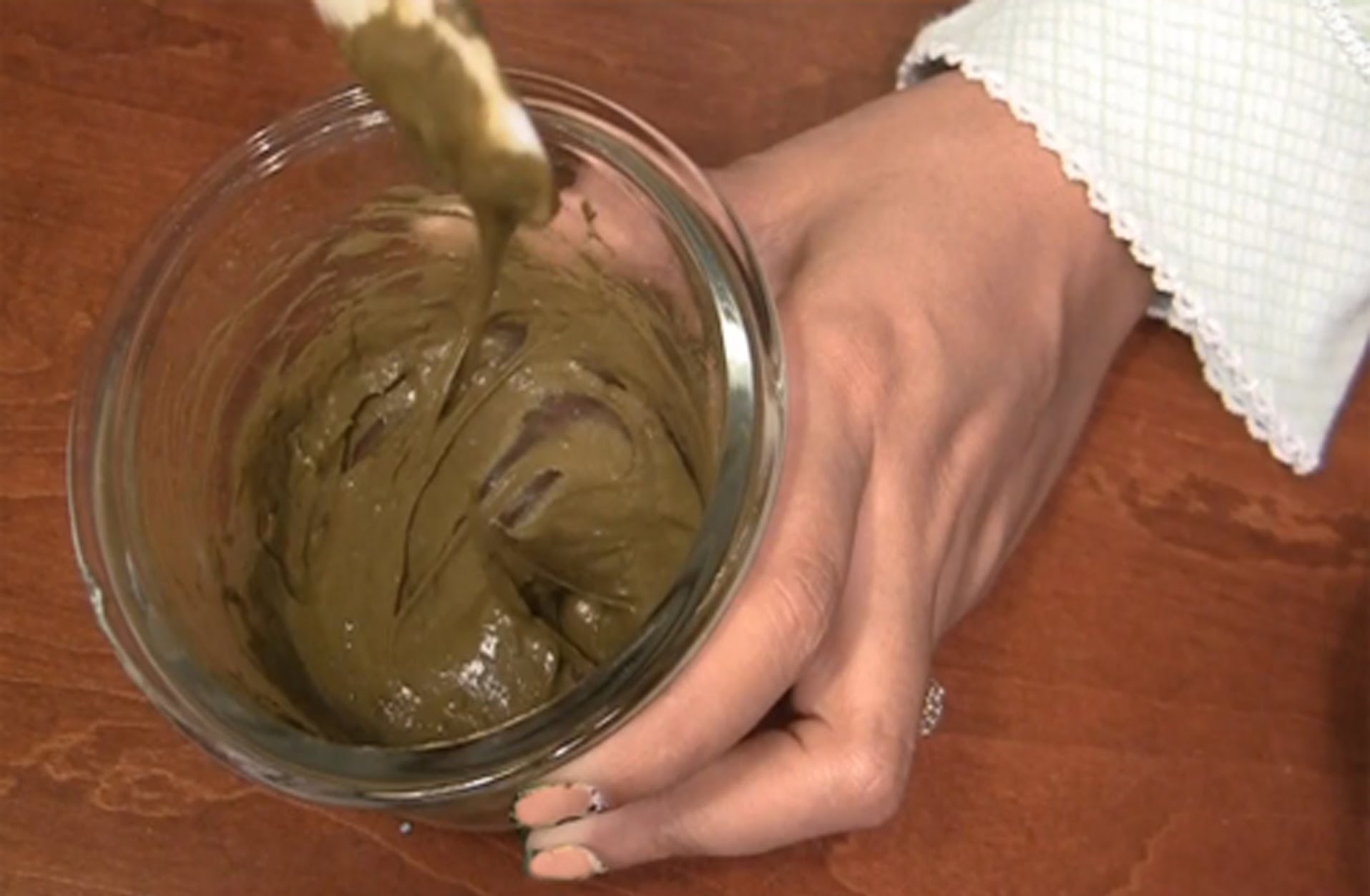نضع الماء على النار حتى يغلي ونضيف إليه حبوب الحلبة ثم نتركه فوق النار حتى يتبخر الماء (يبقى نصفه فقط)، نصفي الماء من حبوب الحلبة ونضيف إليه الحناء ثم نمزج المكونات جيدا.