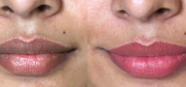 قومي بمزج نصف ملعقة صغيرة من العسل مع نصف ملعقة صغيرة من عصير الليمون الطازج ومن ثم وزعي الخليط على الشفاه وما حولها واتركيه طوال الليل. قومي تطبيق هذه العملية مرتين في اليوم للحصول على نتيجة رائعة بعد أسبوعين.