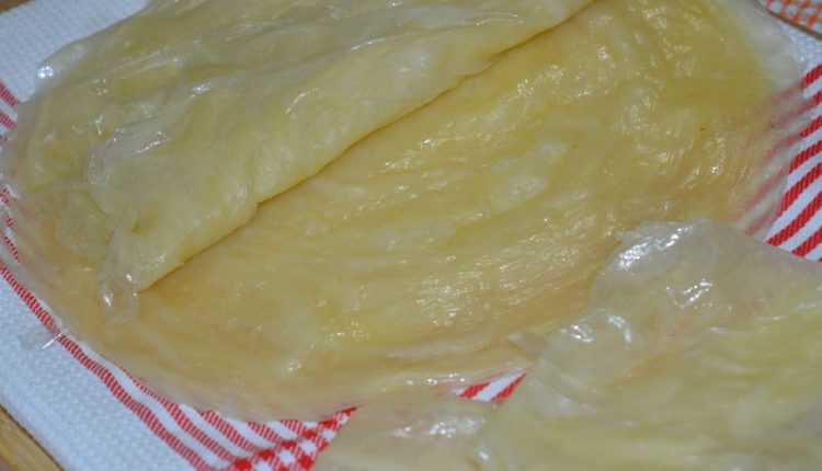 قطّعي العجينة لقطع دائرية صغيرة الحجم، ثمّ ضعيها بمكان جافّ ونظيف مرشوش بالنشا. أحضري النشابة وخذي كلّ قطعة من العجين وضعيها على سطح مرشوش بالنشا وافرديها بشكل جيد حتى تصبح شفافة ورقيقة مع المحافظة عليها من التمزّق والفساد. رشّي وجه العجينة بالنشا أثناء الفرد حتى تحافظي عليها ولتسهيل عملية الفرد.