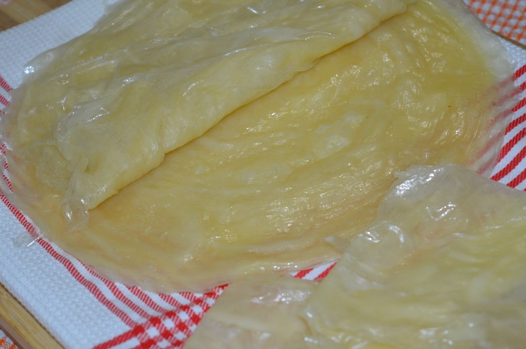 حضري كامل قطع العجين بنفس الطرقة، ثم ضعي بين كل رقاقة والأخرى رشة نشا، ثم ضعي الرقاقة الأخرى فوقها ورشّي النشا وهكذا حتى تنتهي كامل الكمية. افردي العجينة مرّة أخرى وهي على شكل طبقات بالنشابة حتى تحصلي على رقاقات جيدة، ثمّ قومي بفصلها عن بعضها البعض، ويمكن استعمالها مباشرةً في تحضير الأطباق أو حفظها في مجمّد الثلاجة عن طريق تغليفها بكيس بلاستيكي جاف ونظيف.