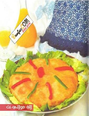 في صفيحة دائرية بالزبدة تفرش ورقتان وسط الصفيحة ثم تفرش ورقات البسطيلة الواحدة جنب الاخرى. تلصق بخليط الطحين والماء وتوضع الحشوة المحضرة وتجمع الحواشي الى وسط حتى تلصق جيدا ثم يعاد تغطية الحشوة بالورقة مع ترك الحواشي خارج الصفيحة ثم تدخل البسطيلة وتلصق بخليط والماء. تدهن جيدا وتدخل الفرن لتتحمر, عند التقديم تغير بقليل من الجبن المحكوك وتدخل الفرن لمدى قصيرة ثم تزين بشرائح الفلفل الحمر والاخضر وقشرة الطماطم ثم تقدم ساخنة أو دافئة.