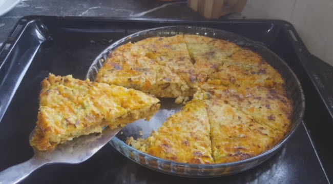 1 حبة كورجيت او الكابو الأخضر ( الخضر مسلوقة مع الملح ومبشورة)