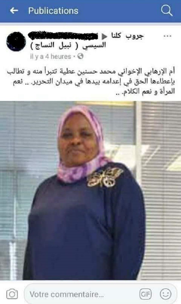 وانهال المصرييون بالتعليقات على الصورة مؤكدين بأنها بالفعل “أم الإرهابي” كما يتضح من الصورة أسفله