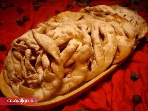 نأخد اناء ونعمل في الدقيق ونضيف الخميرة والسكر والملح والزبدة والفاني والماء لجمع العجين نعجنها كويس بكف اليد حتى نحصل على عجينة لمساء ولينة نعملوا من العجينة كويرات صغار مثل كويرات المسمن ونتركوهم 10 دقايق يرتاحوا بعدين نبسطهم باليد مع الزيت حتى نحصل على عجينة رقيقة شفافة جدا على شكل قرص ونأخد الناعورة (آلة يد مسننة ) نعمل بها في وسط المسمنة أربع أشرطة على العرض نحرص على أن لا نصل الى الجوانب نعمل حمام زيت ونأخد العجينة التي سويناها من الوسط ونحطها بحدر في الزيت ونقلبها بسيخ لغاية ما تتحمر ونتابع العملية لغاية ما نخلص باقي الكويرات ونحطوهم على ورق ليمتص الزيت منهم وبعدين نرشوهم بسكر كلاسي ونقدموهم