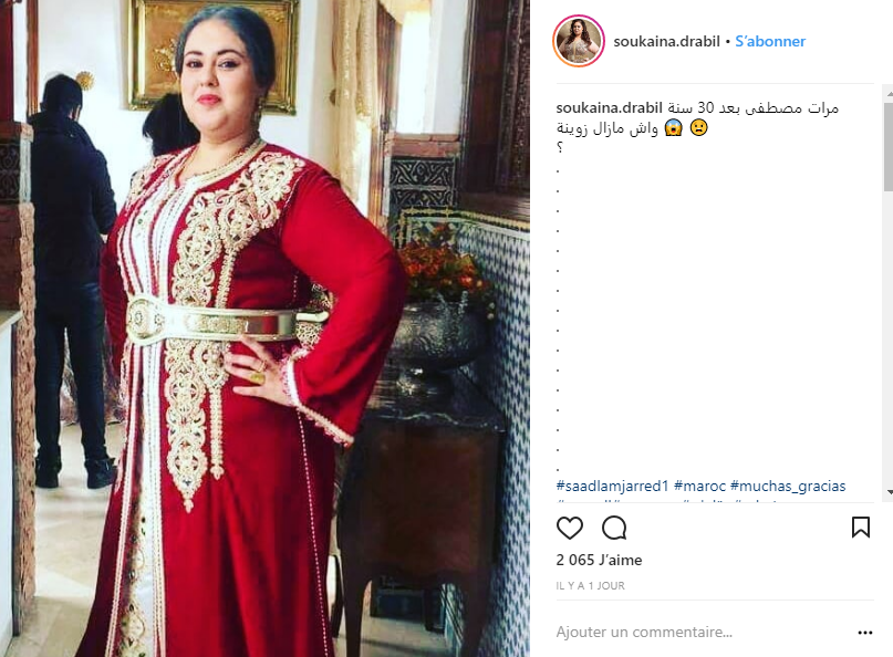 نشرت الفنانة المغربية سكينة درابيل عبر حسابها الخاص على موقع التواصل الاجتماعي انستغرام صورة للشخصية التي أدتها بسلسلة “الخاوة”، وكيف سيصبح شكلها بعد مرور 3 سنوات.