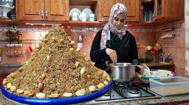 قشور اللوز مطحونين مع 2 ملاعق زيت زيتون