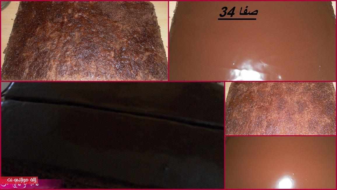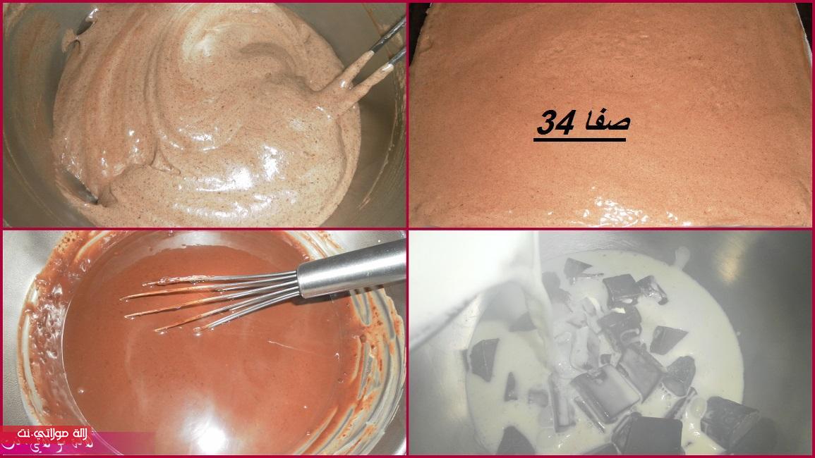 نقطعوالشكلاط صغير ونضيفو عليه كريمة (من بعد ما غلات فوق النار) وفانيلا و نحركو حتى يدوب الشكلاط