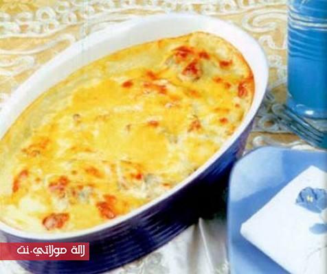 – نرش الجبن المفروم من الفوق وندخل الأنية إلى الفرن الساخن، بدرجة حرارة 180% لمدة 30 دقيقة .