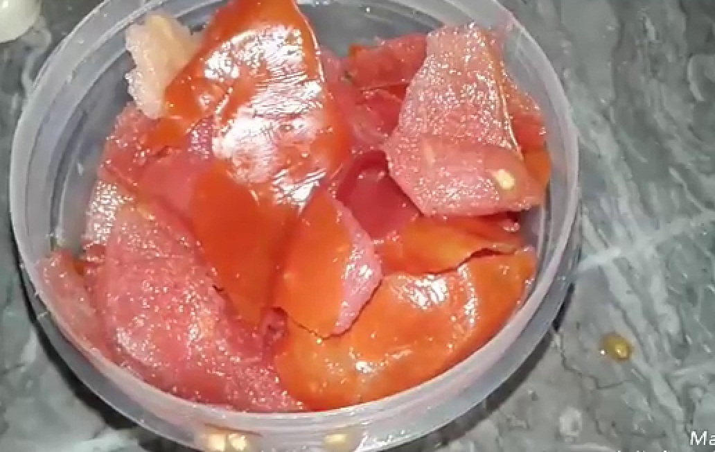 فبعد أن تقومي بتقطيع الطماطم لا ترمي قشورها ولا البذور ولا اللب فقط قومي بوضعها في كيس بلاستيكي كلما قمتي باستعمال الطماطم إلى حين تجدين نفسك بلا طماطم في إحدى المرات أو فقط عندما ترغبين في إعداد طبق المعكرونة أو الكسكس أو البيتزا هنا فقط يمكنك إخراج الكيس وضعيه في إناء مع القليل من الملح على نار هادئة إلى أن يزول الثلج وبعدها اطحنيها في الخلاط واحصلي على طماطم صالحة للكسكس للحريرة بلون احمر وطعم لذيذ.