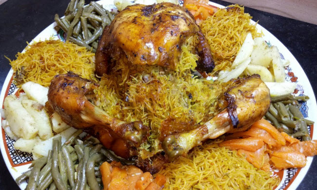 شعرية فرميسل مع نفس الثوابل +زيتون اخضر دواءر +كبد وكوانص الدجاج