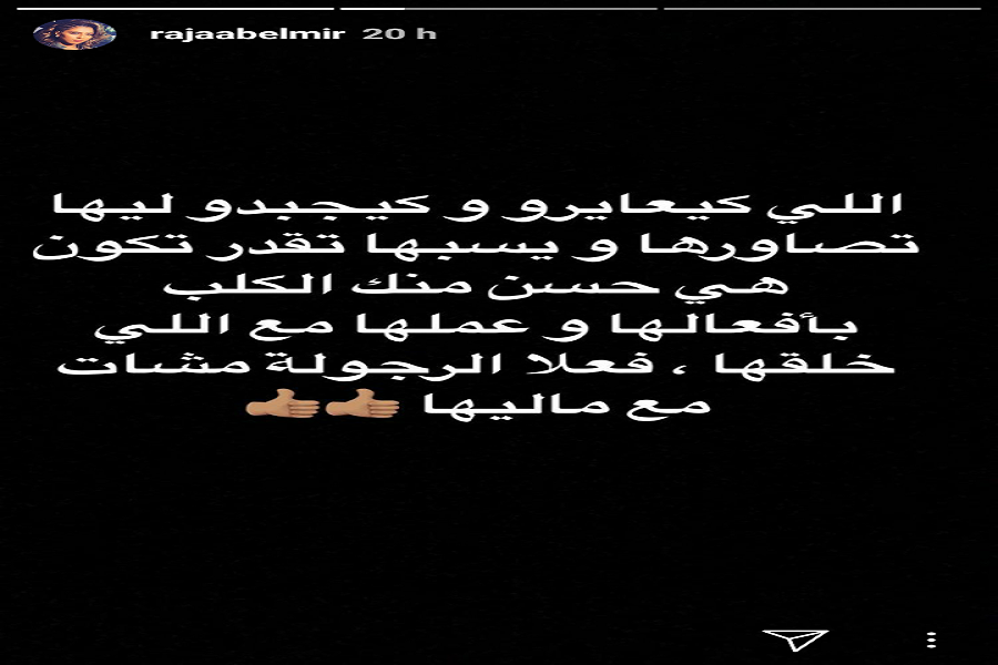 فيما قالت رجاء بلمير : » اللي كيعايرو وكيجبدو ليها تصاورها ويسبها تقدر تكون هي حسن منك الكلب بأفعالها و عملها مع اللي خلقها، فعلا الرجولة مشات مع ماليها ».