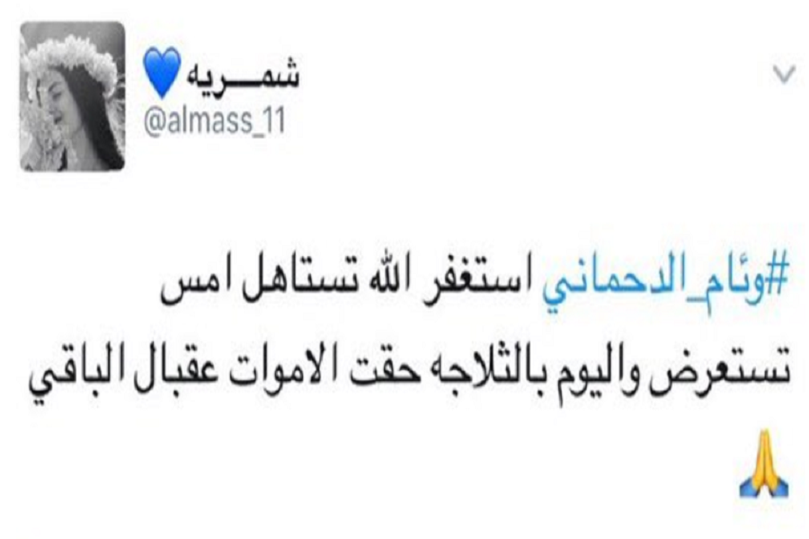 وانتشر مقطع فيديو من مراسيم الصلاة الراحلة الفنانة المغربية وئام الدحماني.