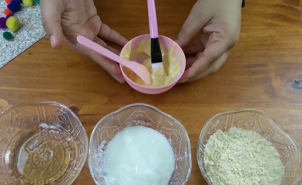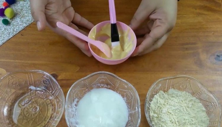 نمزج المكونات كلها حتى نحصل على خليط متجانس ثم نضعه على البشرة ونتركه حتى يجف بعد ذلك نفركه بلطف ثم نشطفه بالماء.