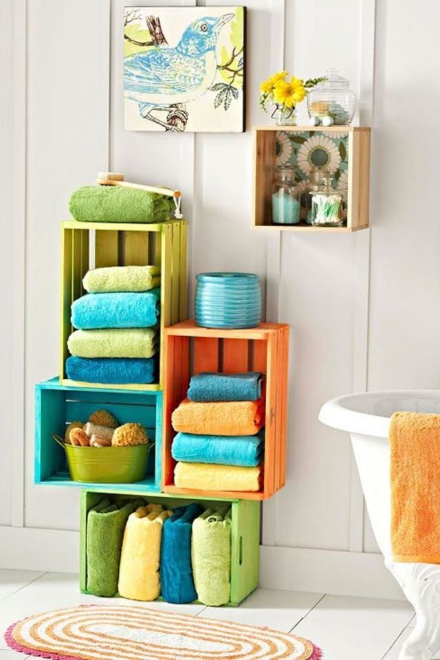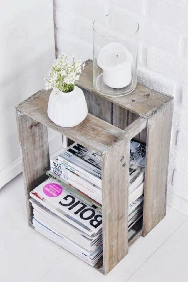 من أسهل الطرق التي يمكنك استخدام الصناديق الخشبية فيها في المنزل هي استخدامها كمائدة جانبية صغيرة أو تقومي بوضع الكتب والمجلات عليها و أيضا إذا كنت ترغبين في تنظيم بعض الأشياء في حمام منزلك قومي بصف الصناديق الخشبية بحيث تجعليها مكانا لتخزين المناديل والفوط وغيرها من الأشياء التي تحتاجينها.