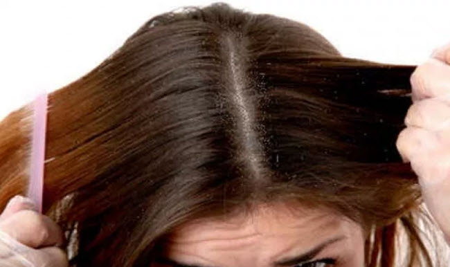 أحضري وعاءً، صبي فيه ملعقتين صغيرتين من الخل و ملعقة صغيرة من عصير الليمون، طبقي المزيج على فروة الرأس مع التدليك، ثم اشطفي شعرك بشامبو البيض.