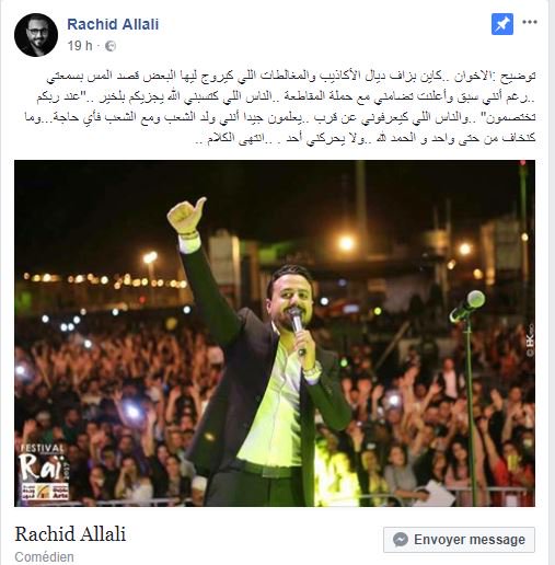 وضح العلالي أنه أعلن تضامنه مع حملة المقاطعة، لكنه تعرض للسب والإهانة، مشيرا إلى أن الأشخاص القريبين منه، يعلمون جيدا أنه ”ولد الشعب”.