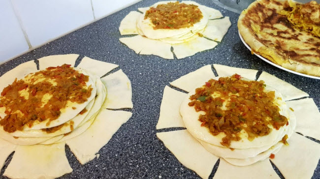 750غ دقيق الفورص/250غ سميد ناعم او ما يسمى بالمغرب دقيق الفينو/ملعقة صغيرة خميرة الحلويات ما يعادل 4 غ/ والملح/والماء لجمع العجين