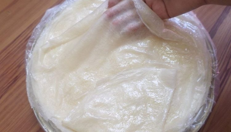 قطّعي العجينة لقطع دائرية صغيرة الحجم، ثم ضعيها بمكان جاف ونظيف مرشوش بالنشا. أحضري النشابة وخذي كلّ قطعة من العجين وضعيها على سطح مرشوش بالنشا وافرديها بشكل جيد حتى تصبح شفافة ورقيقة مع المحافظة عليها من التمزّق والفساد. رشّي وجه العجينة بالنشا أثناء الفرد حتى تحافظي عليها ولتسهيل عملية الفرد.