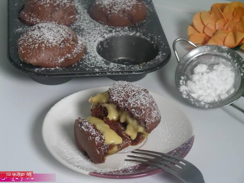 نخفق الصفار و السكر ثم نضيف الزيت و الحليب ثم الدقيق منخول مع الخميرة و الكاكاو مع التحريك بواسطة الطراب الكهربائي