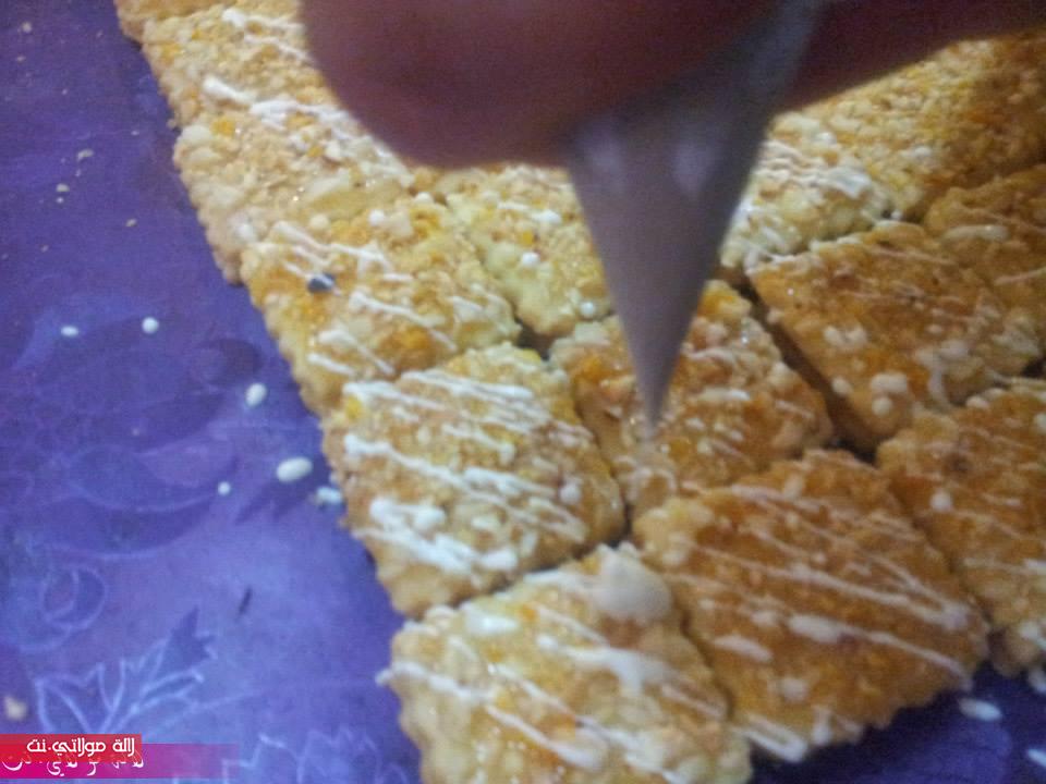 والطحين علا حساب الخليط وللتزيين :رابعة اللوز مسلوق مقلي امهرمش مخلط مع قطرات روح الخوخ و اكليكوز مع الناباج باش نلصقو صابلي