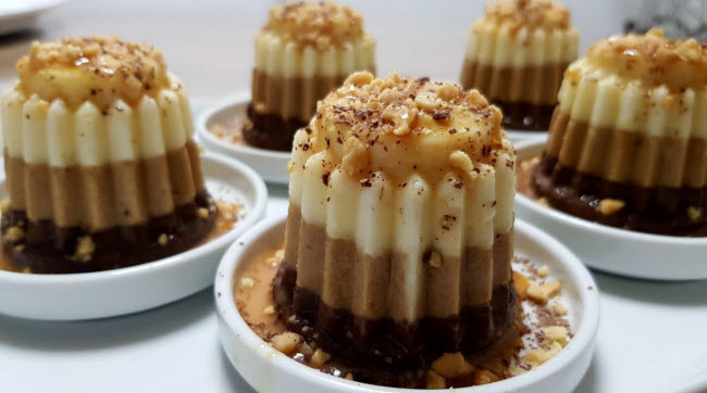 1 ليتر حليب /4او5 معالق كبار نشا الذرا / 2 معالق صغار قهوة سريعة الدوبان/2معالق صغار كاكاو/ 2 فانيلا لتنسيم الطبقة البيضاء/التزيين حسب الرغبة