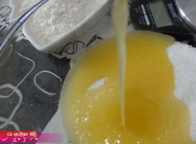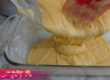 واسكبي الخليط في المول ديال كيكة ديالنا