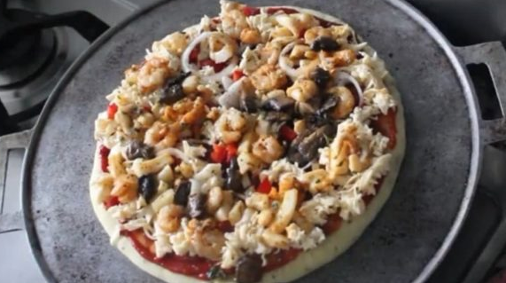 العجين : نصف كيلو دقيق ابيض وربع كيلو دقيق الفينو ملعقة زبدة القليل من الزعتر خميرة معجونة ربع كاس من زيت الزيتون وربع كاس من زيت النباتية الحشوة: اختيارية فواكه البحر اول كفتة فلافل وبصل او فلافل وتونة